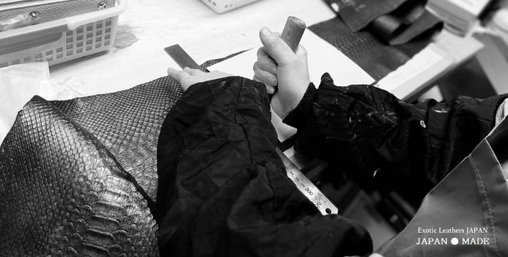 当社のダイヤモンドパイソン革は、国内加工にこだわり、東京で染色しております。
