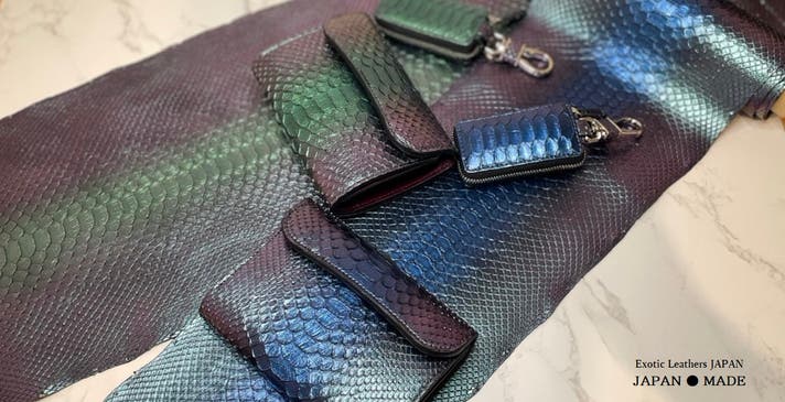 虹染パイソンは、東京染色職人による当社オリジナル加工となっております。