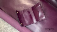 見る角度を変えると革全体は、パープルからグリーンに変化しますが、肚部はグリーンで不変的に仕上げました。