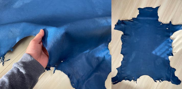 野を駆け回る野生動物を捕獲してつくられる獣皮は、人に管理された畜産動物の革に比べて、傷や色むらなどが不均一にみられることが特徴。