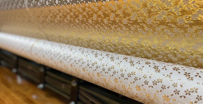 「金襴」とは、金糸や金箔を用いて柄を織り出した黄金に輝く優美な織物のこと。
