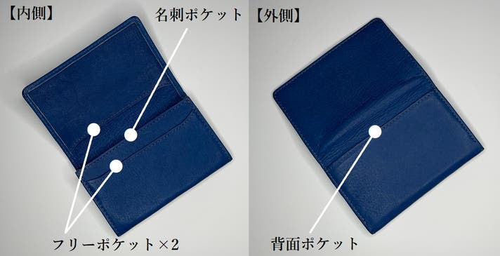 名刺入れを構成する表革と裏革の双方に、同一の革を贅沢にあしらい、美しく仕立てた名刺入れのことで、大変贅沢な仕様となっております。
