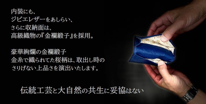 - 内装生地には富士北麓で織り上げた豪華絢爛 金襴緞子!