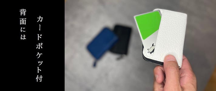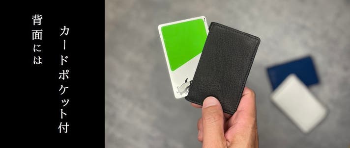 背面のカードポケットには、Suicaやクレジットカード、ご自宅のカードキーなどを入れておけば、たいへん便利です。