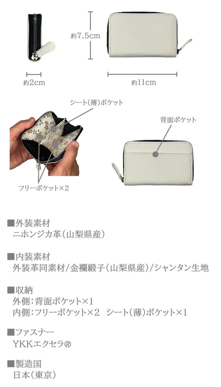 ※白革は、URUSHINASHIKA(印伝)で採用されている漆を施す前の環境に配慮された白革を採用している。