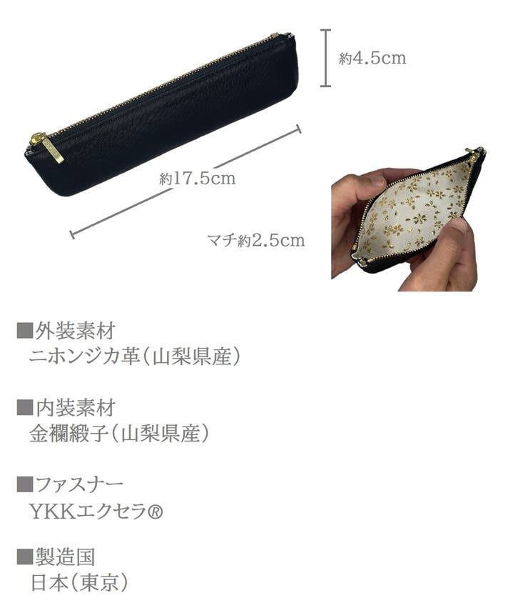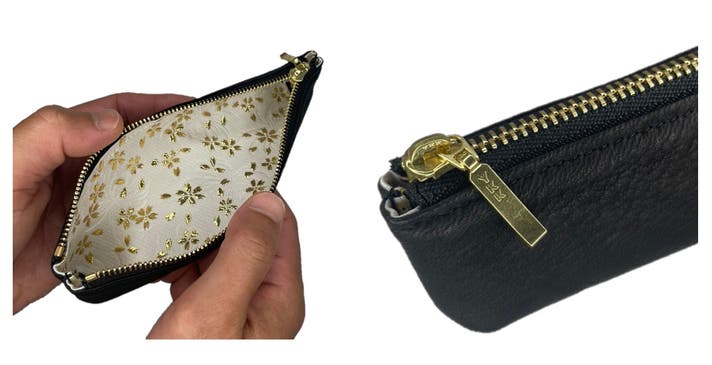 ファスナーテープは黒を採用し、ファスナー金具には、サテンゴールドにすることで、高級感と落ち着いたデザインになっています。