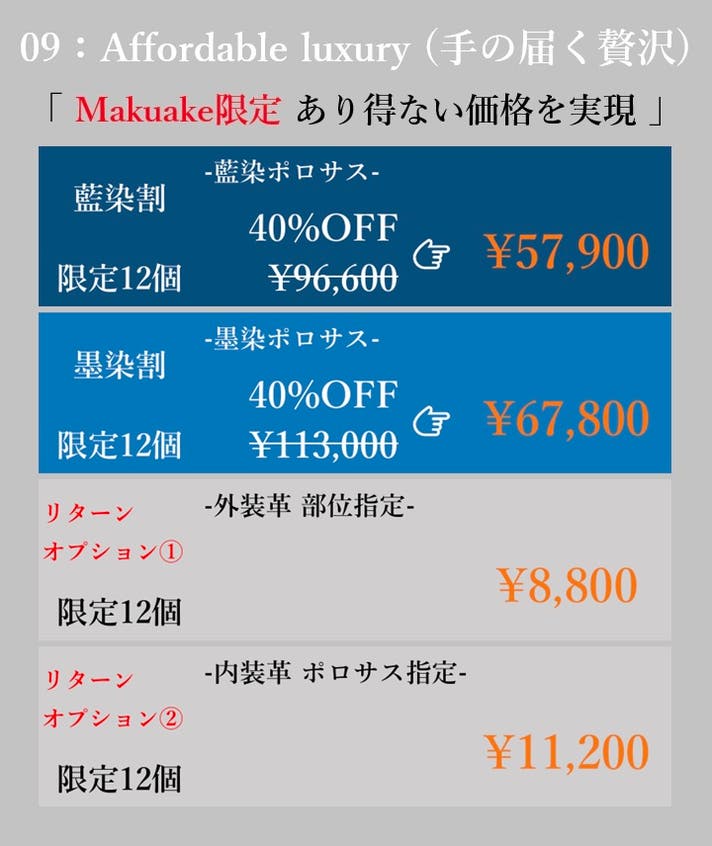 - 【2つのリターンオプション】外装革が選べる革部位指定&内装牛革をポロサス仕様にカスタマイズ可能