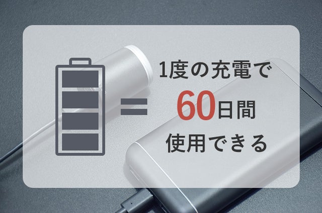 一度充電すれば60日使用できる800mAhの長持ちバッテリー。