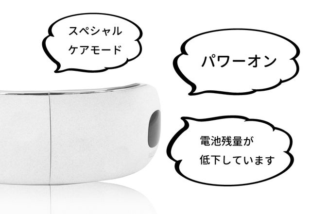 音声はもちろん日本語。見えない状態でボタン操作しても、全てのモード切り替え動作と温度設定、空気圧設定状態を、優しい女性の声色でモード状態をお知らせします。またガイド音声が不要の場合は音量を一番下まで下げる事で、無音に設定することも可能です。