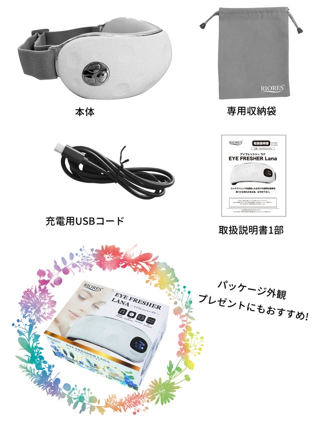 アイフレッシャーラナとは、空気圧・振動・温感、音楽の4つの機能を搭載し、さらにそれらを組み合わせ5つのモードをプログラミングした目元を酷使する現代人に向けた「癒し」のアイテムです。