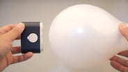 ご覧ください!風船を押し当てても割れません!(※本体のランプがついているのが動作中の証です。)