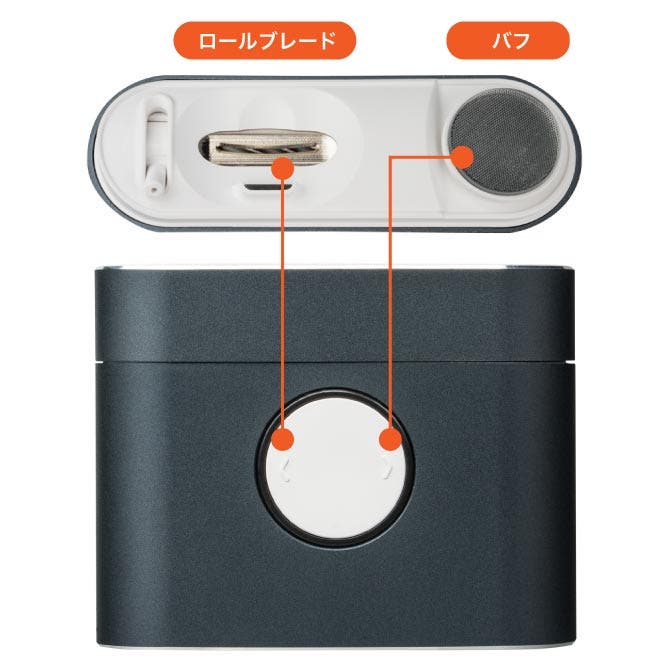 爪を切るロールブレード部と、爪を研磨し整えるバフ部は本体側面のボタンによって簡単に操作することができます。