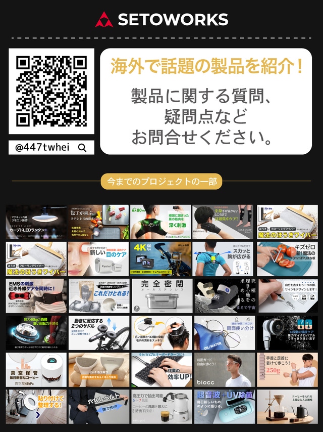 setoworksは日本の新しい製品を外国にいち早く紹介する事業を始め、海外の新しい商品や直接企画した多様なプロダクト製品を日本国内に紹介する事業を展開しています。