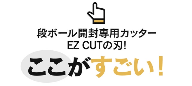 EZ CUTは1.8mmの厚さ、6mmの長さの刃で段ボールを一気に開封できます。