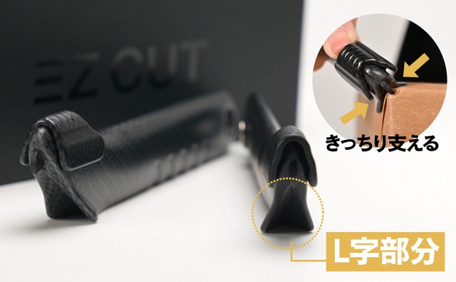 EZ CUTは両側面にL字型の支える部分があり、より速く安定的にカットできます!