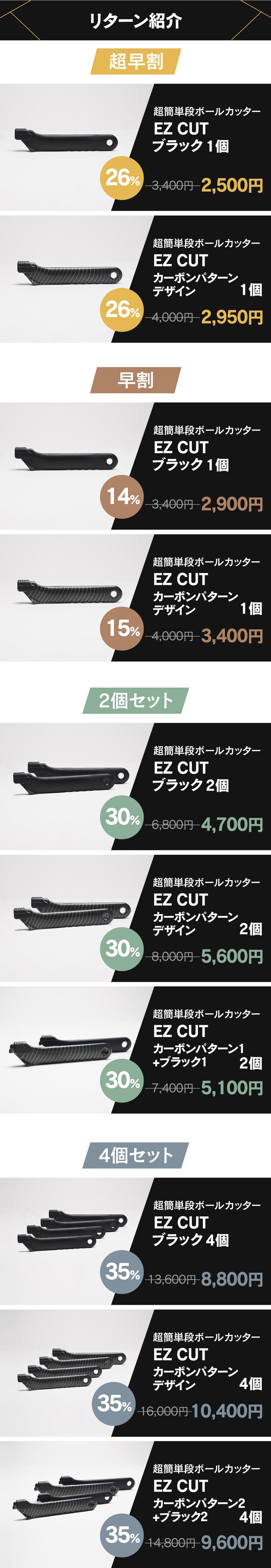 【ブラック+カーボンセット】EZ CUT ブラック2個+カーボンパターン2個
