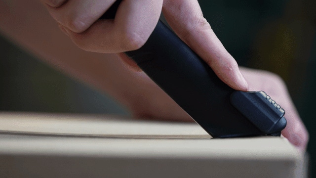 使用後は本体についている蓋を指で軽く上に押すと刃が見えなくなり、手を怪我する心配もなく便利に保管できます。