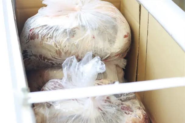 4.到着後すぐに解体し、原皮を冷凍して鮮度を保つ