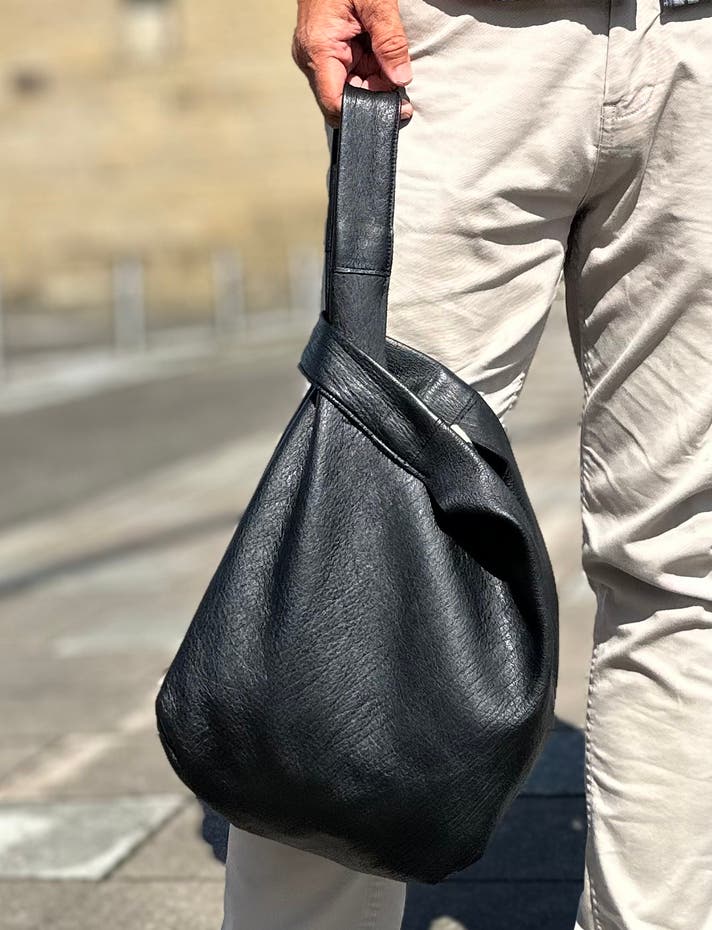 形と縫製の美しさが際立つミディトートは、式典から日常使いまで、男女問わず品よく持てます。