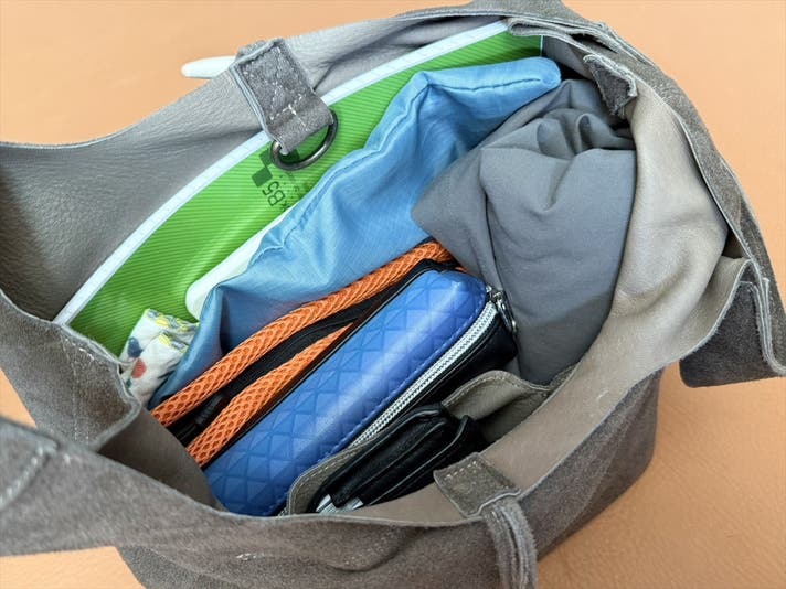 「中身が見えない工夫があって、肩掛けもできるトートだと嬉しい」