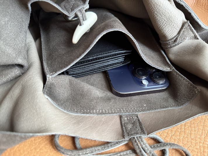 スマホ、財布、モバイルバッテリー等がすっと収まります。