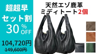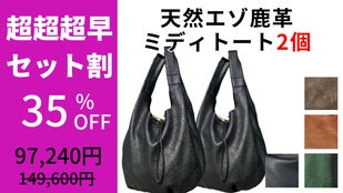 【超超超早セット割】天然エゾ鹿革のミディトート 2個(ショルダーストラップ付き)