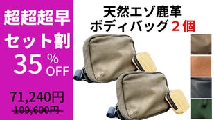 【超超超早割】35%OFF 天然エゾ鹿革ボディバッグ 2個セット