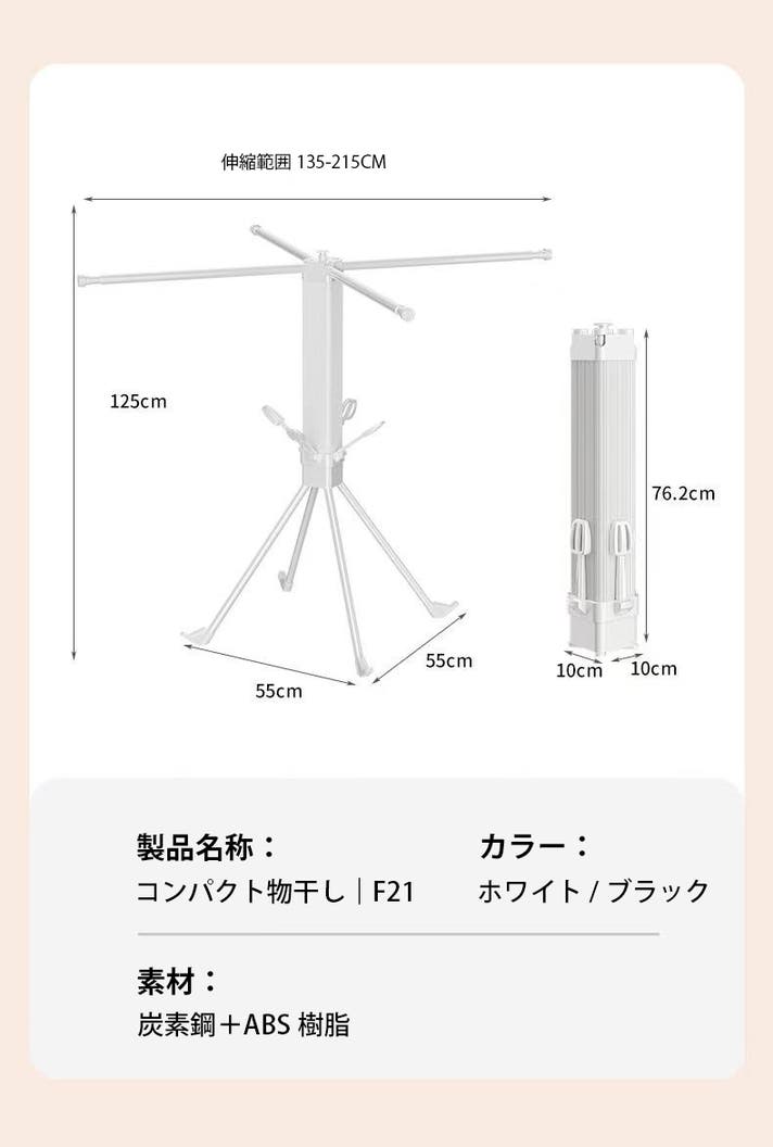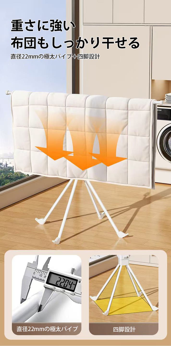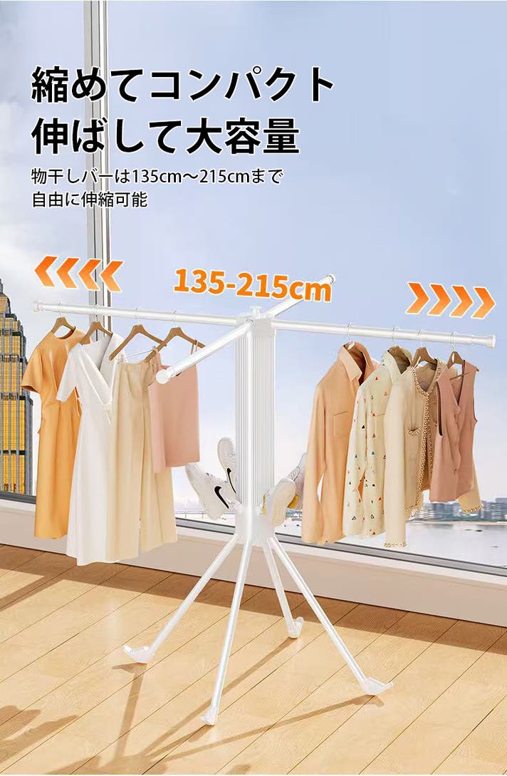- 横幅215cm×高さ125cmへ伸縮自在!アーム角度3段階調整で布団もロングコートも干し放題