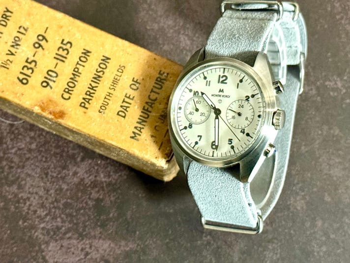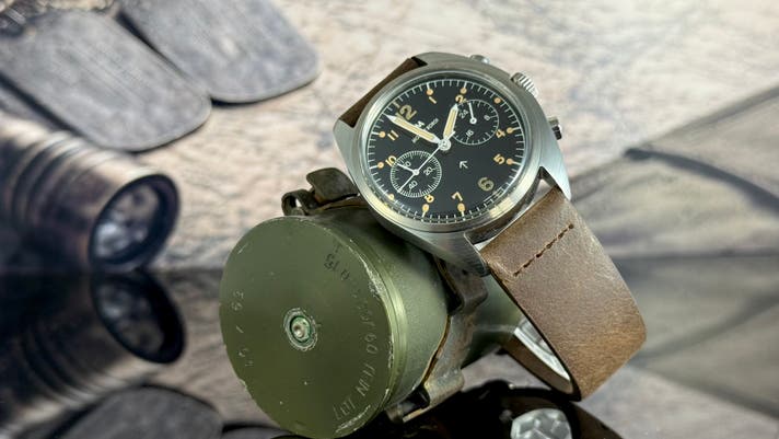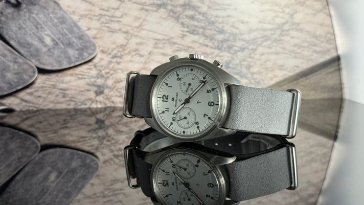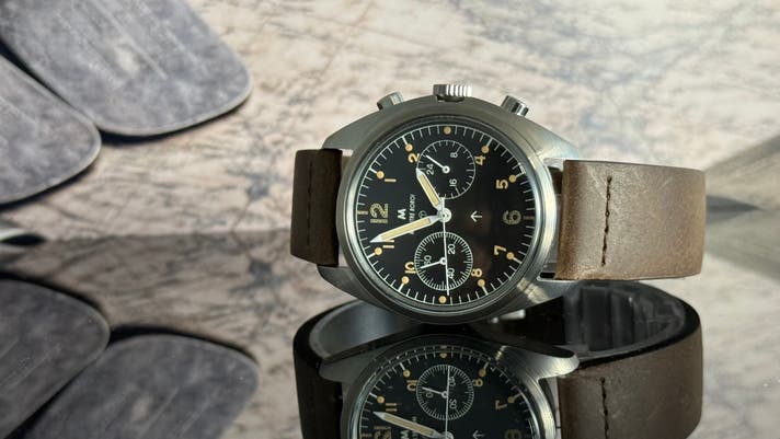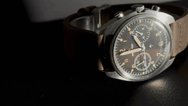 1970年代、**Ministry of Defence(英国国防省)**はRAFクロノグラフの仕様を見直します。その結果採用されたのが、2プッシャー・クロノグラフです。
