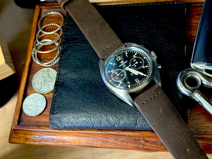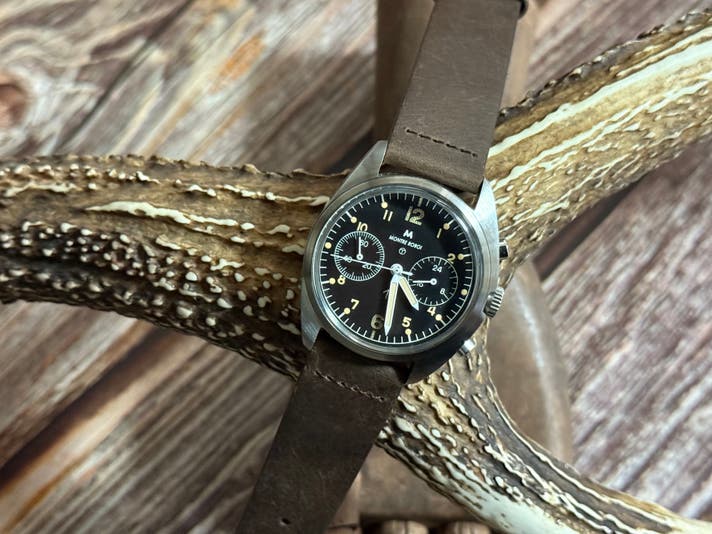 英国軍クロノグラフがワンプッシュから2プッシャーに進化したことで、“計測装置”として初めて完成形に到達しました。これは使い勝手の改善ではなく、軍用としての信頼性が一段階上がったことを意味します。