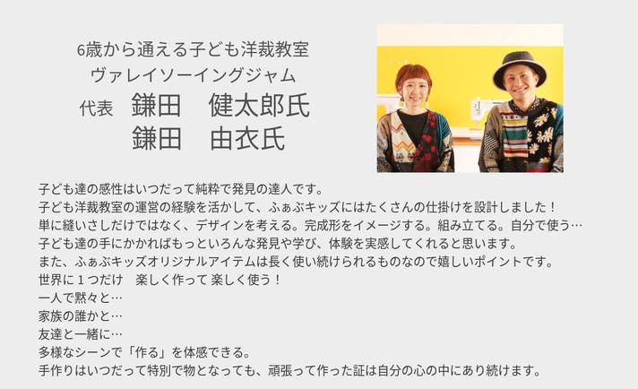 プロジェクトメンバーだけで具現化するのは困難だったため、子どもの洋裁教室を運営するヴァレイソーイングジャムさんとコラボレーションすることにしました。