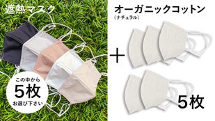 遮熱マスク5枚+オーガニックコットン(ナチュラル)マスク5枚