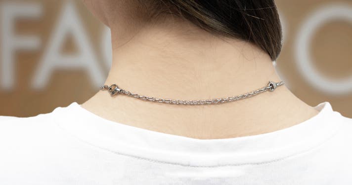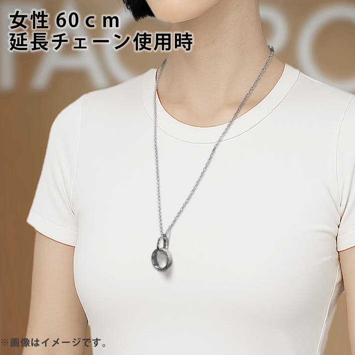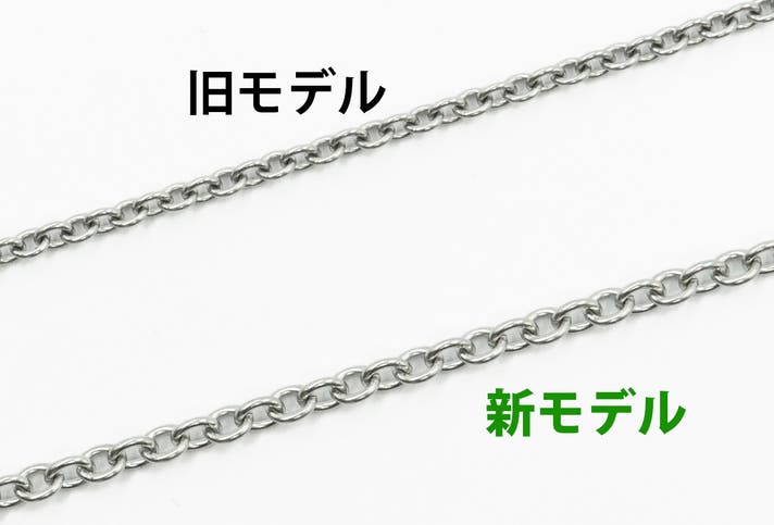 新モデルの標準チェーン長さは50cmにしました。オプションリターンの延長チェーンで、10cm長さが伸ばせます。季節やファッションでご自分で長さを調節することもできます。
