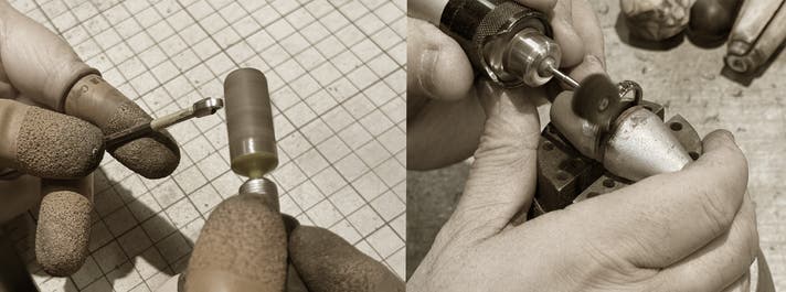 FACTRONのリングホルダーは、東京大田区の自社デザイン工房で、他ではあまり作る事のない3次元微細切削加工を駆使し、部品を一つ一つ無垢の材料から削り出し、ハンドメイドで仕上げます。