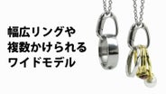 ボリュームのある幅広リングや細身リング複数向けモデル。チェーンを首にかけたままリングの付け外しができます。