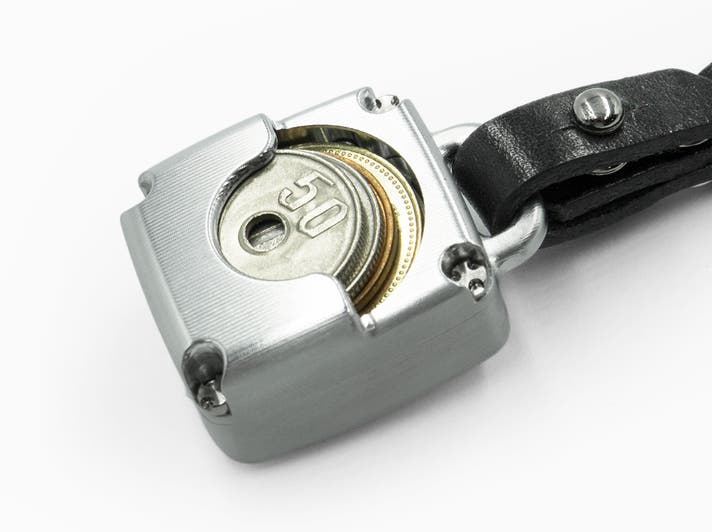 シャキッとスムーズに1枚ずつコインが出し入れできる、航空機素材削り出しコインケースのプチサイズモデル。