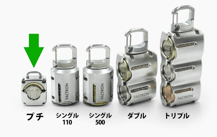 FACTRONのコインケースで最小サイズ。キーホルダーやバッグに取り付けられるプチサイズです。