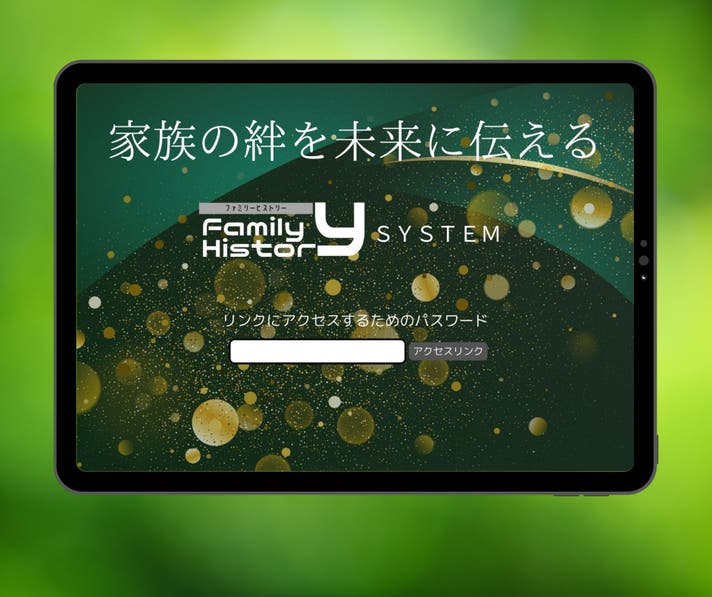 ファミリーホームページへはアクセスページを通じてご覧いただけますが、納品時に個別のアクセスキーをお渡しします。アクセスキーを入力して初めて閲覧可能となります。これにより、不特定多数の方が閲覧できないよう、セキュリティー対策を講じています。