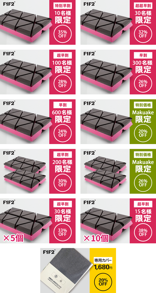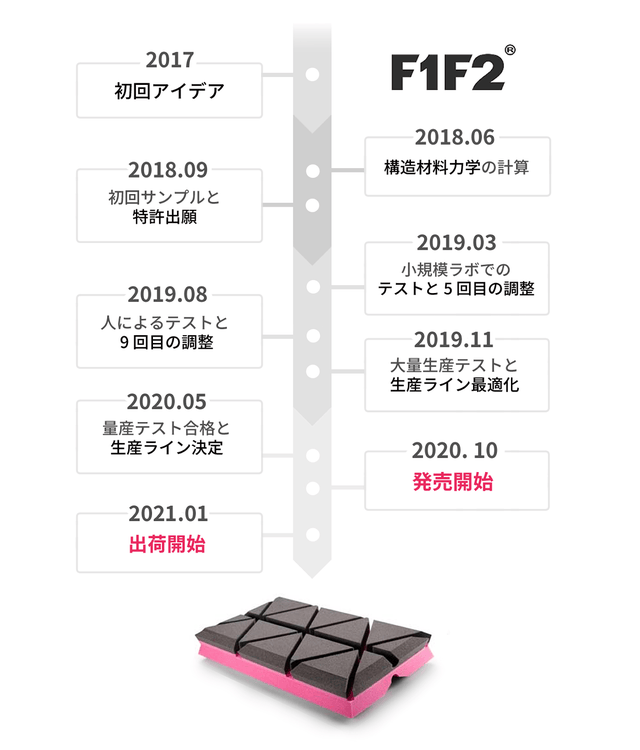 私たちのチームはピローとマットレスのデザインと開発に長年の経験があります。 キックブースターで第1世代枕「キューブ」の発売し、世界に向けて出荷しました。 その後約2年という時間をかけて、第2世代枕、「マトリックスピロー」を開発しました。 私たちは自信をもって、皆さんに新しいピローを生産し、スケジュール通りに製品を出荷します。 ※皆様の応援購入により量産効率が向上した場合には、正規販売価格が予定価格より下がる可能性もございます。 ※ご注文状況、使用部材の供給状況、製造工程上の都合により出荷時期が遅れる場合があります。 ※並行輸入品が発生する可能性があります。個人輸入及び販路によっては防ぐことができない可能性がある点、ご了承願います。 ※ご⽀援後のご⽀援者様都合によるキャンセルや返⾦は受付いたしませんのでご了解ください。 ※類似製品が存在する可能性がありますが、ご自身でご検討の上、ご支援をお願いいたします。 アドバイスやフィードバックがある場合は、hello@f1f2.com までお気軽にご連絡ください。