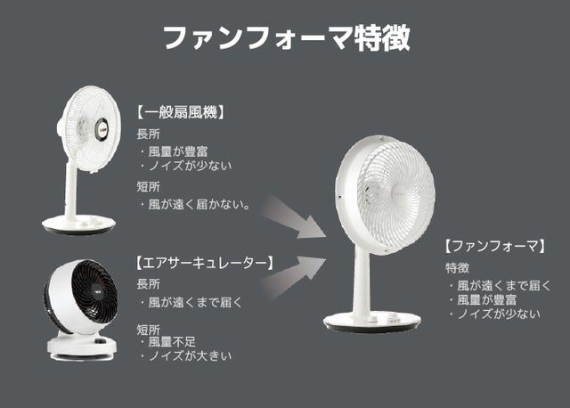 ファンフォーマの特徴である風を作るファンは、航空機のジェットエンジンをモチーフにしたデザインで直進性が最大化されたエアビームを生成します。