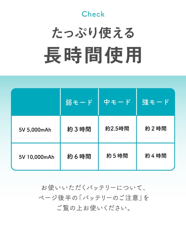 - 「3段階風量調節」で、気温やシーンに合わせて使い分けが可能