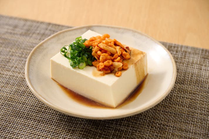 絹ごし豆腐の滑らかさと、天かすのカリカリ感が絶妙なコントラスト。醤油をかけなくても、キムチパウダーの塩味と旨味だけで立派な一品料理(アテ)になります。