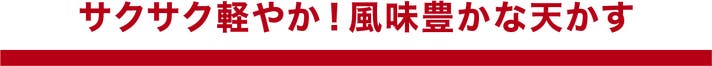 主役の一つである「天かす」は、油っぽさを感じさせない「軽さ」と「香ばしさ」を徹底追求しました。 食べた瞬間に口の中でほどけ、決して料理の邪魔をしない。あくまで素材を引き立てる名脇役としての、上質な天かすを使用しています。