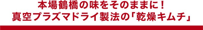 私たちが採用したのは「真空プラズマドライ製法」。 一般的な熱風乾燥とは異なり、低温でじっくりと水分を抜くことで、キムチ本来の香り、色、そして何より「旨味」をぎゅっと凝縮することに成功しました。