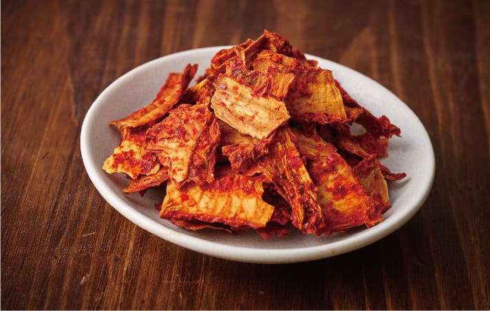 口の中で水分を含んだ瞬間、高麗食品自慢の「黄(ファン)さん秘伝の薬念(ヤンニョム)」の味わいが蘇ります。ただ辛いだけじゃない。野菜の甘みと唐辛子の深みが広がる「だし旨辛」は、この製法だからこそ実現できた味わいです。