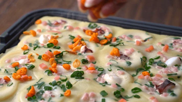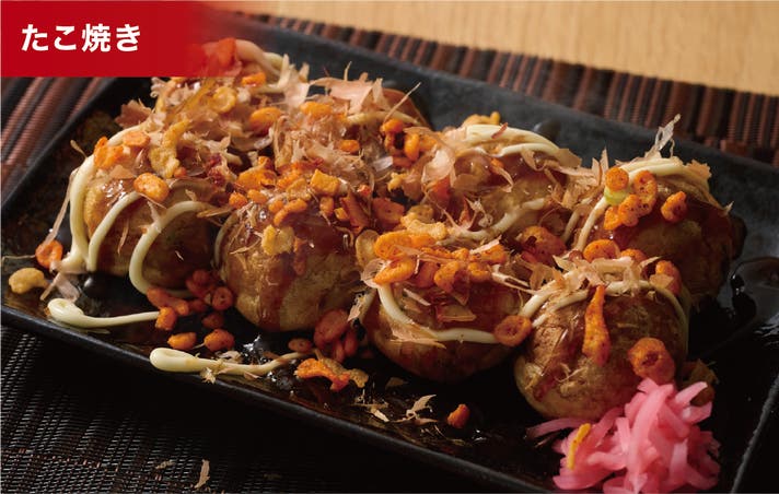粉もんの本場・大阪ならではの楽しみ方。ソースマヨネーズの上から追いトッピングすれば、香ばしさが倍増。生地の中に混ぜ込んで焼くのも通の技です。