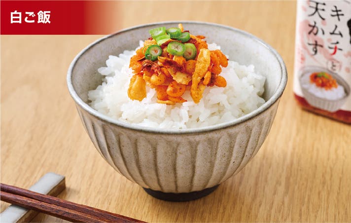 仕上げに浮かべてコクをプラス。天かすの程よい油分とキムチの風味が、いつものお味噌汁をボリュームアップさせ、満足感を高めます。