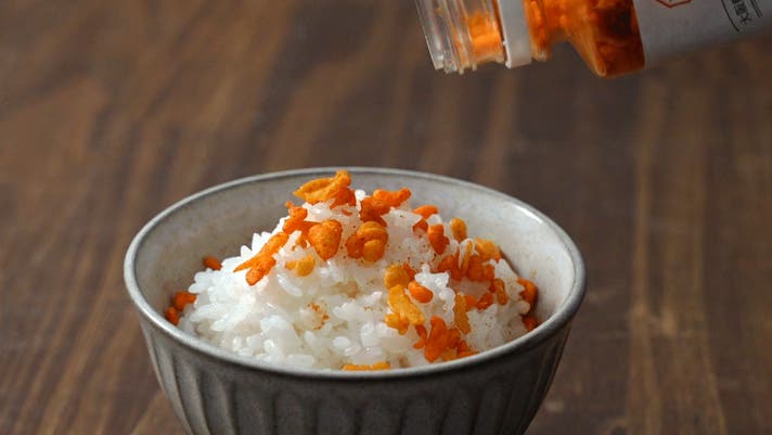 シンプル・イズ・ベスト。炊きたての熱々ごはんにかけるだけで、イワシ出汁の香りがふわり。サクサク食感と米の甘みが絡み合い、おかず要らずの美味しさです。