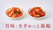 大阪の食文化に欠かせないのが「出汁(だし)」。 キムチの辛味を優しく包み込むように、出汁の風味をプラスしました。これにより、韓国料理だけでなく、和食との親和性が格段にアップ。 さらに、隠し味として「イカ天」をブレンド。イカの旨みと少しハードな食感がアクセントになり、噛めば噛むほど味わい深い、奥行きのある美味しさを生み出しています。