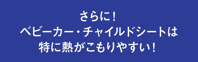 ベビーカーやチャイルドシートは子どもの身を守る事を考慮し、体を包み込む形状をしています。またベルトで固定されるため身動きが取れず、体温調整の苦手な子どもがさらに暑い環境に身を置くことになってしまいます。
